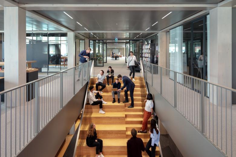 FOR is the largest floating office in the world, and one of the most sustainable offices globally, as well as a pioneer in circular timber workplaces of this scale. The use of wood as a main construction material dramatically reduces the carbon footprint of the building.