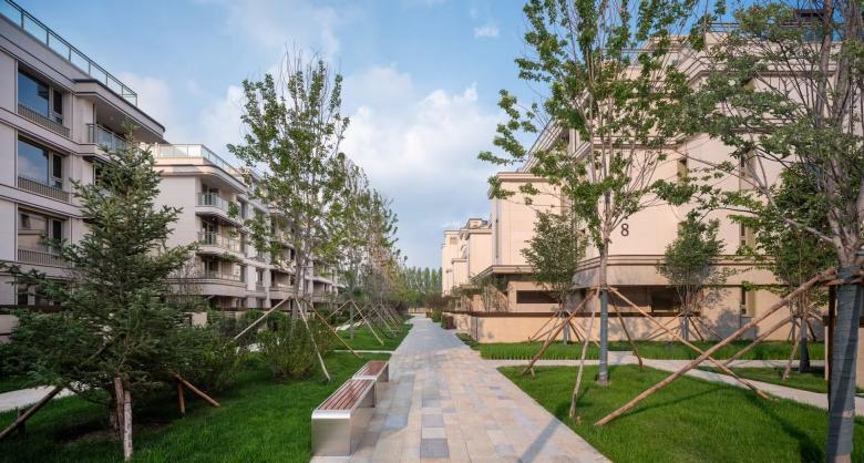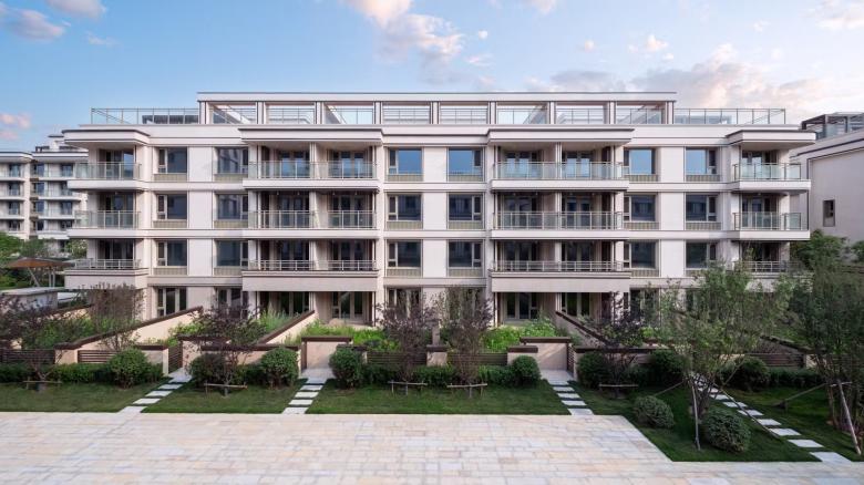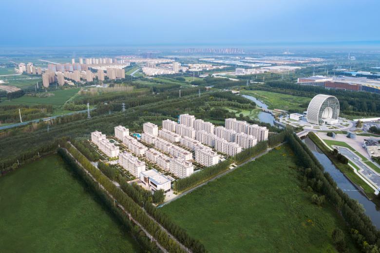 Almost 600 apartments were planned in a land area of around 8.3 ha, adopting a low-density approach with a high greenery rate to create a park-like delightful living environment. The south part of the property features mainly four to six-storied apartments for foreign experts, while the northern area consists of seven to eight-story residential buildings that will be open to the market.