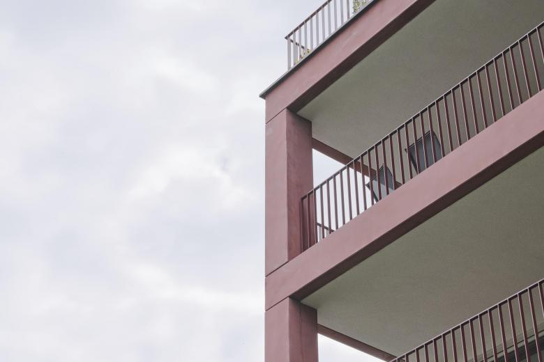 Der Anbau schmiegt sich mit seiner Fassadengliederung, Vor- und Rücksprüngen sensibel an den Bestand und in die Umgebung. Große Fenster rahmen die Ausblicke ins Grün. Die Putzfassade nimmt die typischen Zierelemente der Zwanziger- und Dreißigerjahre mit den abstrahierten Fensterfaschen auf. Feinteilige Inszenierung von Farbe und Material: Fenster, Geländer, Betonfertigteile, Alu-Dachschindeln, Oxidrot akzentuiert das Haus von der Fassade bis hin zum Treppenhaus. Eleganz, maximales Volumen, Großzügigkeit und schöne Ausblicke ins umliegende Grün.