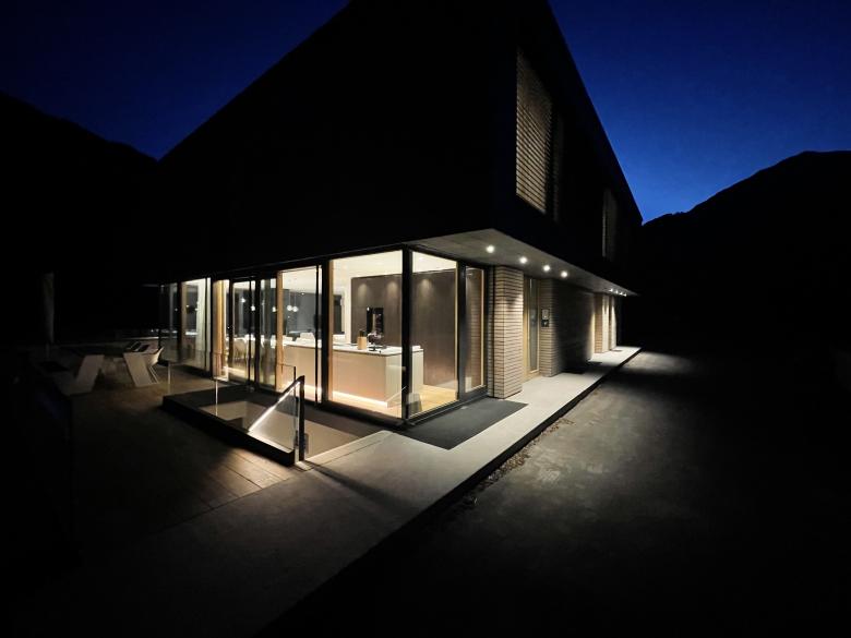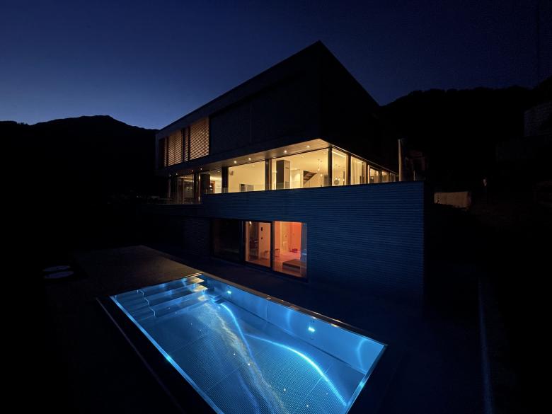 Das Gebäude wurde in Holzbauweise mit Brettsperrholzplatten als Niedrigenergiehaus errichtet. Es beinhaltet zwei Ferienhaushälften mit jeweils zugeordnetem Wellnessbereich und einem gemeinsamen Pool.