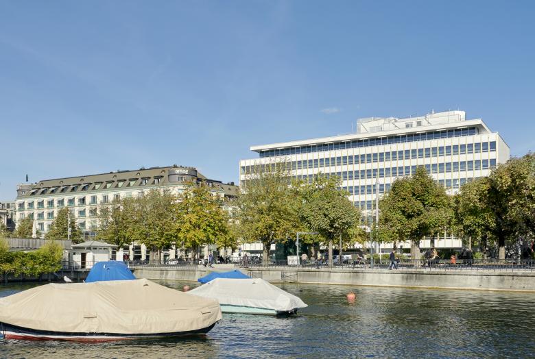 Das siebengeschossige Geschäftshaus mit zurückversetzter Attika liegt an städtebaulich prominenter Lage am Zürichsee, wo das Seefeldquartier in den Utoquai mündet. Das Haus wurde von 1961 bis 1965 von Architekt Armin Meili im Auftrag der Übersee- Handels AG erstellt und ist seit 2013 im Inventar der Denkmalpflege. Mit der Gesamtsanierung wird die Primärstruktur und die zweigeschossige Eingangshalle samt aller Boden- und Wandbeläge erhalten. Der Ersatz der haustechnischen Anlagen und die energetischen Anforderungen bedingen eine Rekonstruktion der Gebäudehülle. Der 1:1 Ersatz der Fassad