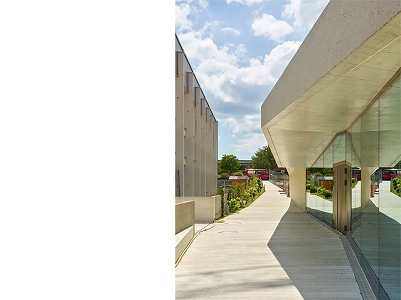 Afin de s’intégrer au mieux dans le futur jardin public et assurer un dégagement aux habitants qui occuperont les logements, le bâtiment se développe sur un seul niveau avec une toiture végétalisée composée de plusieurs facettes.