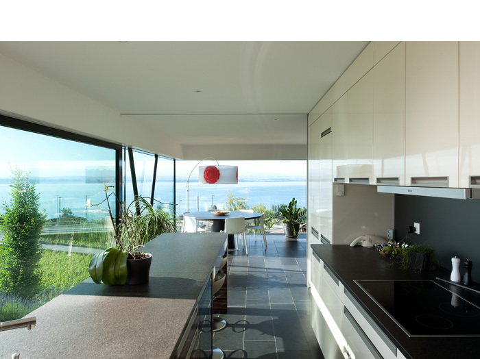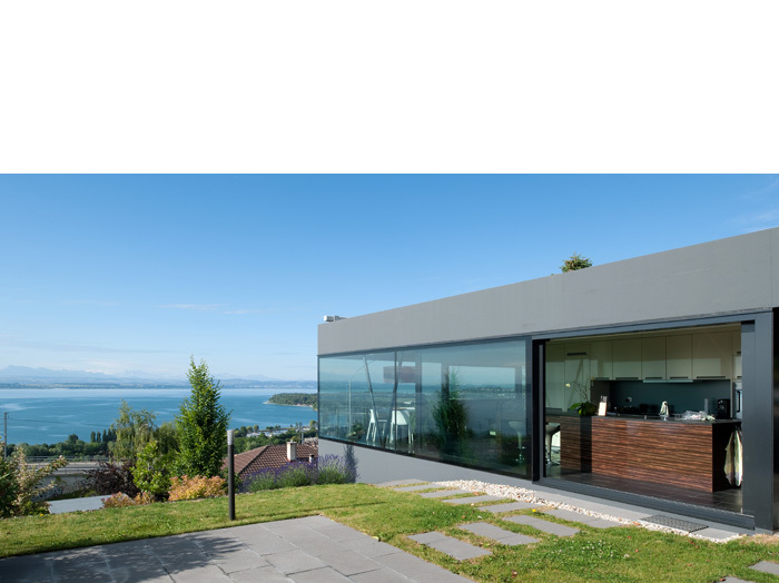 Sereine, précise, ouverte, la maison laisse place à la nature, la vigne. Située sur une parcelle dominant le littoral, elle se présente face à l’horizon, tel un belvédère.