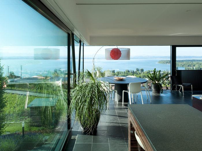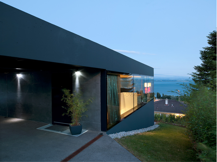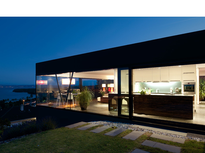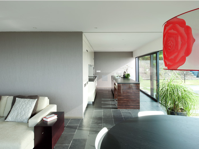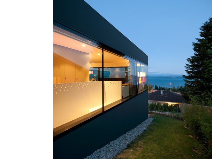 Un couvert généreux accueille le visiteur. Il permet une étape, une pause avant de découvrir les espaces de jour qui s’élancent sur un panorama infini. Là, le paysage emplit les yeux qui se l’approprient et s’en imprègnent. Confortablement installés dans leur loge, les occupants assistent aux représentations de la nature et de la vie au fil des saisons. Quelques éléments subtiles permettent à l’occupant d’intimiser les espaces à sa guise, au grès des envies et des besoins.