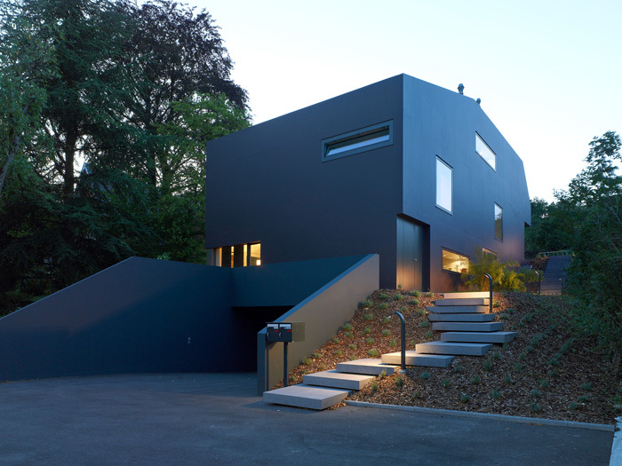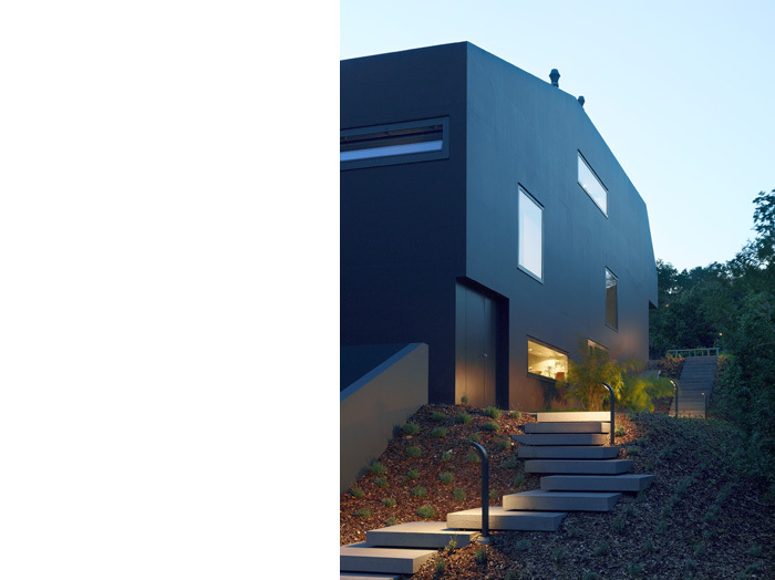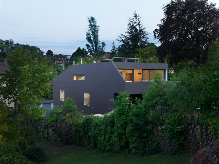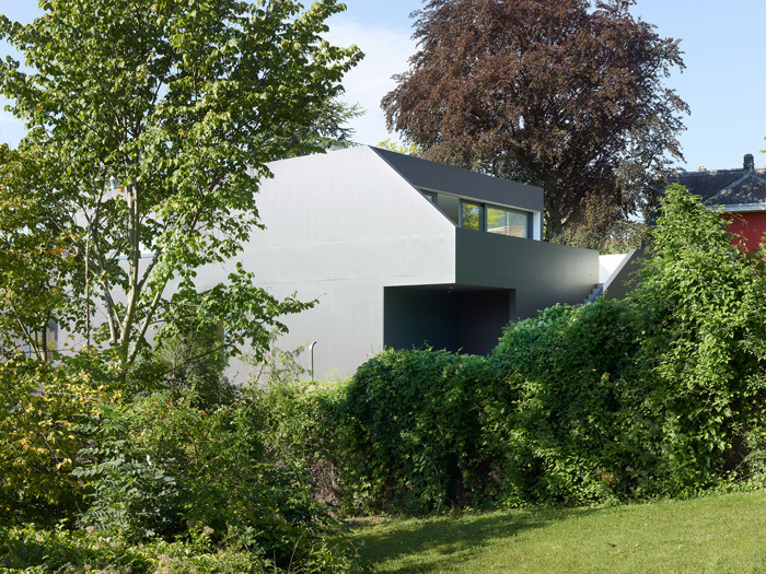 Dans ce contexte hétéroclite aux percées limitées, le bâtiment cherche à privilégier l’intimité de ses occupants. Tournant le dos à l’espace public, il s’ouvre franchement sur le parc profitant ainsi d’un cadre naturel végétal. Il se développe sur trois niveaux habitables pour trouver les quelques dégagements offerts par la hauteur.