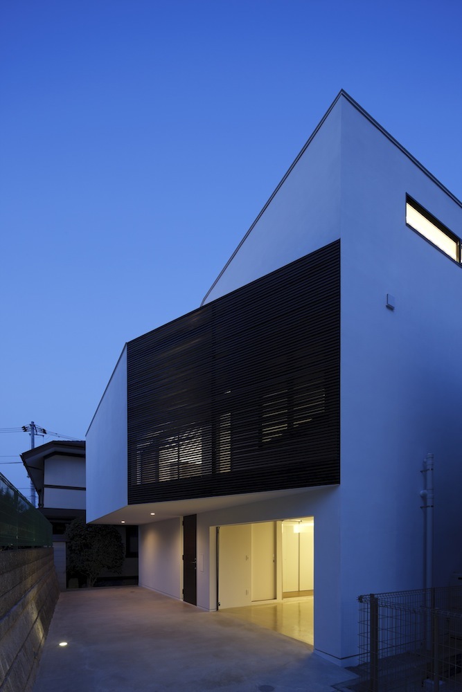 四方を隣家に囲われた都市部の旗竿敷地という一見ネガティブな環境だからこそ生まれる内外のコントラストは、家族や訪れる人々に心地良いサプライズを与えるに違いない。