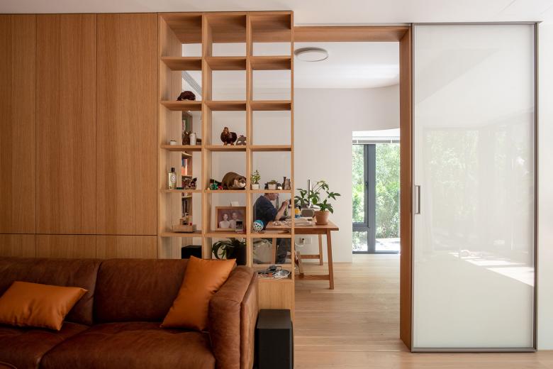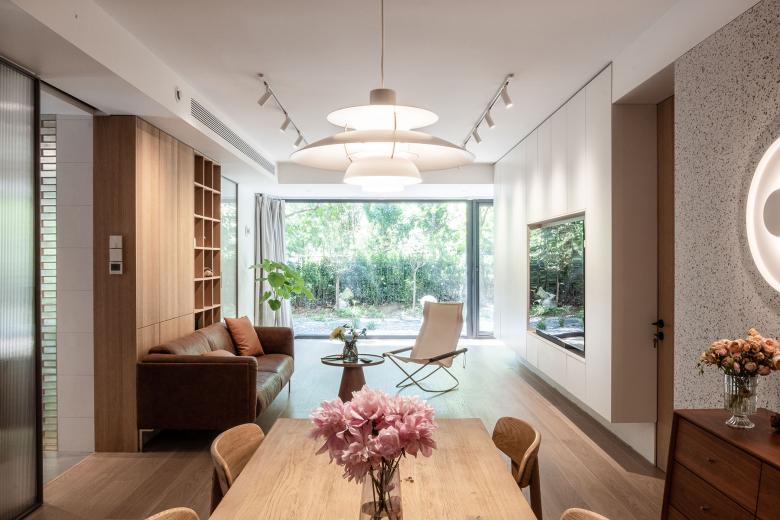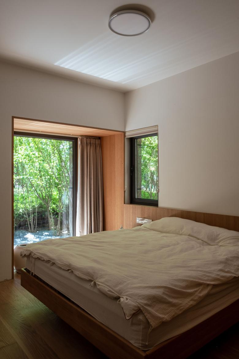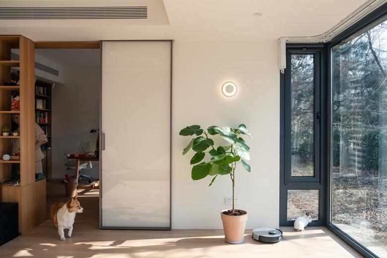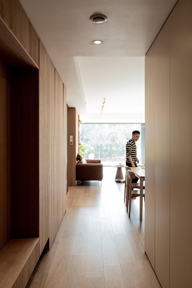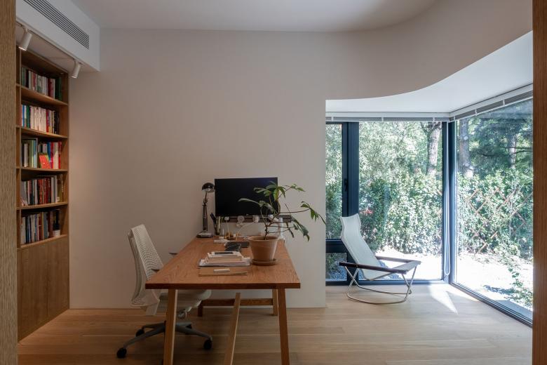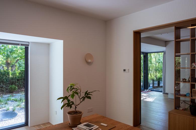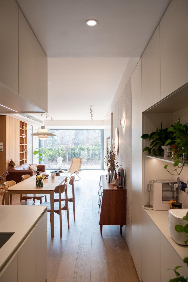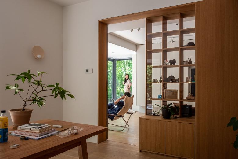 这个项目位于北京某小区内一住宅楼首层的新置二手房。 第一次拜访这套房子的时候,被迎面扑来的南向的院子和被阳光打在墙上的树影所吸引,刹那间淡忘了进入小区前穿越北京城区的拥堵和夏日的闷热。房子的现状是打通了所有隔墙作为画室使用的大敞间,沿着墙体在房间内游走,开始酝酿被重新分隔空间,重新定义使用后的空间过度关系,如何独立又互通。