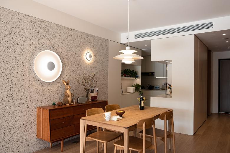 这种空间关系,在这套以餐厅和客厅为中心集中式地布置各个功能房间的户型中,客餐厅将以直接或间接地方式承载着使用功能以外的功能。这一功能将赋予室内自身的空间形态特征。