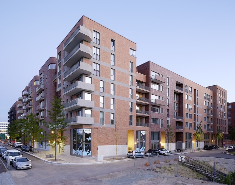 Für die Umsetzung der Materialvorgabe „roter Ziegel“ dient als Referenz die neobarocke Architektur Hamburgs, wie z.B. das HHLA-Gebäude in der Speicherstadt, die mit ihrem Spiel von Ziegel und Naturstein besonders geeignet zu sein scheint, ein gleichermaßen anspruchsvolles wir wohnliches Ambiente zu erzeugen.