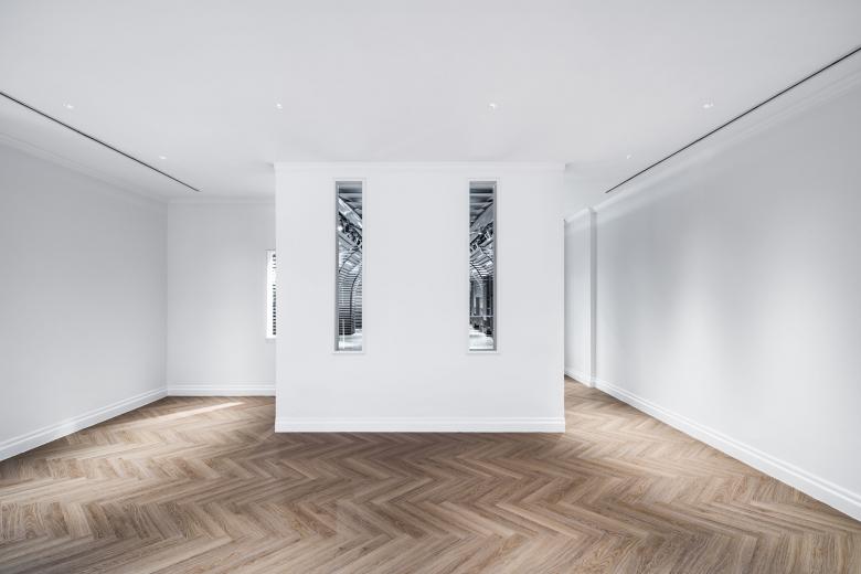 Elements of the umbrella-shaped system can also be found at the door and windows of the building façade, in which stainless-steel materials have been rotated vertically to 90 degrees and embellished into the old Shikumen-style grey bricks. They are the first clue that the room inside has something new and special to offer.