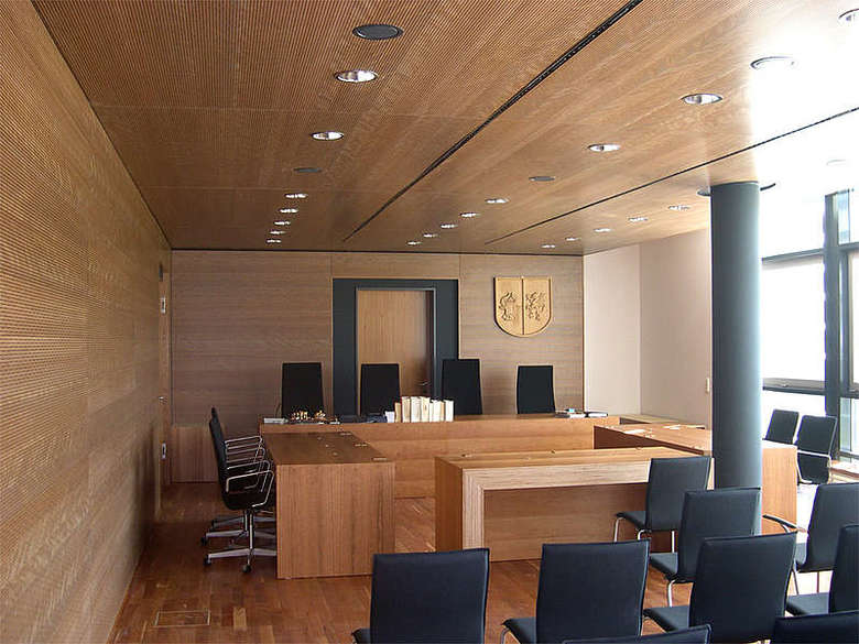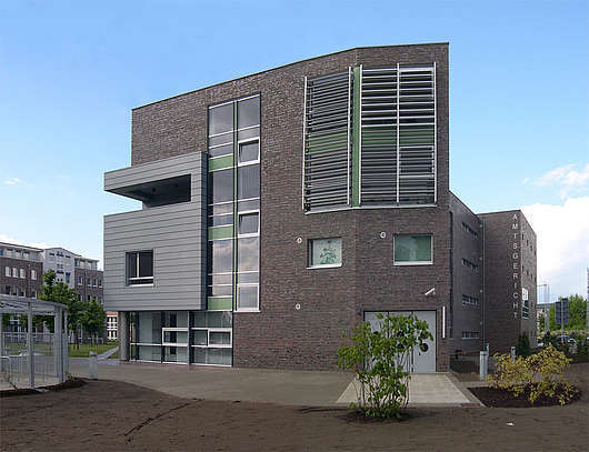 Klinker, Glas und Zinkblech bewirken ein zurückhaltend, elegantes Erscheinungsbild mit eigener Identität. Die Funktionen des Gebäudes sind in der Fassade ablesbar, die innere Struktur ist klar und transparent. Sitzungssäle und Arbeitsräume orientieren sich zum Platz, Archive, Wartezonen und Nebenräume dienen als Schallpuffer zur Straße.