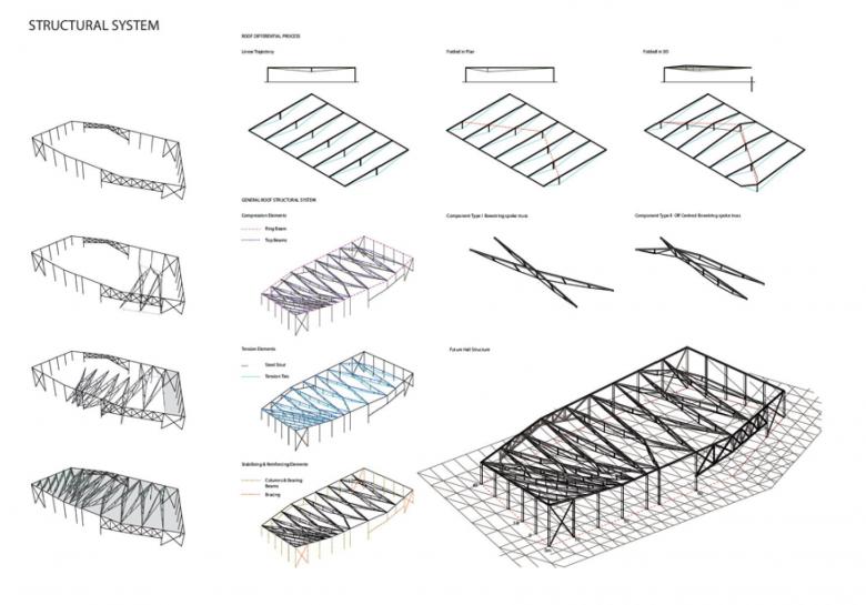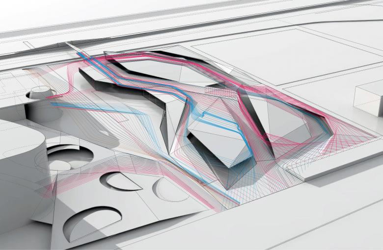 For this invited competition to complete the existing Mercedes-Benz Campus in Stuttgart with a Future Centre and a Classic Centre, we employed our cross-disciplinary and cross-scalar approach to fuse landscape and architecture as a complex yet flexible switchboard for the canalization of movements and connections of multiple programs and relationships centered around the visitor.