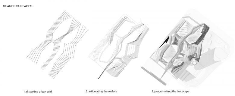This project is a conjecture into a new architecture of integration and the future of mobility based on the ‘shared surfaces’ principle: a design concept that minimizes separation between vehicular and pedestrian traffic. It encourages spontaneous and safe negotiation of shared areas between different users.