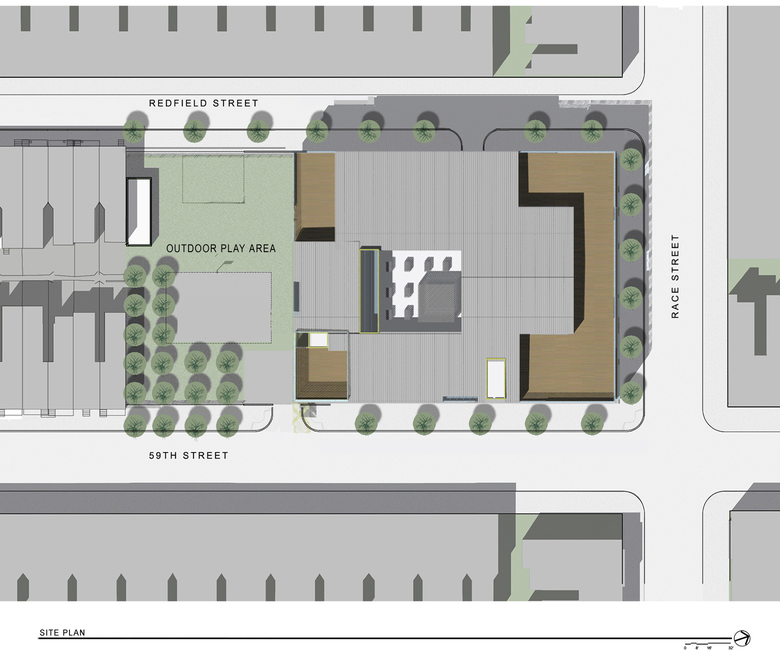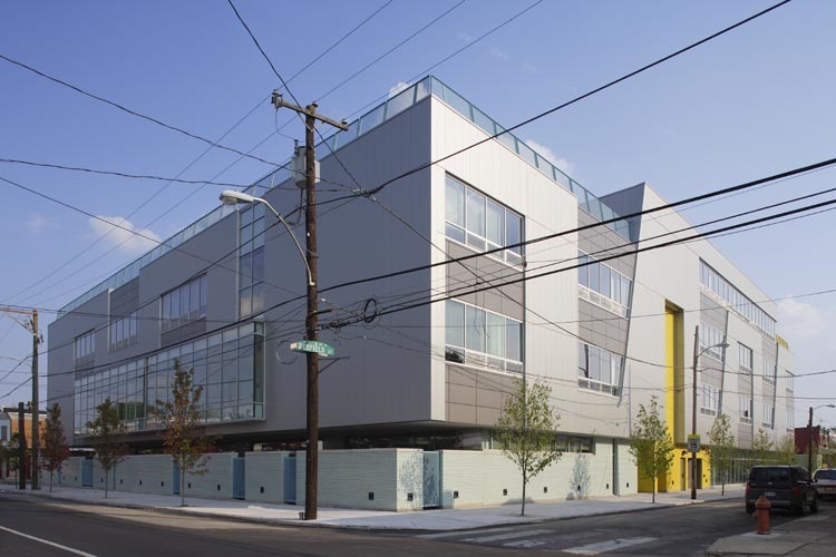 The design challenge for this project was to provide a first rate academic facility on a gritty, tight urban site. To maximize outdoor play area and neighborhood green space, a four-story school was designed with minimal at grade play areas and roof gardens adjacent to 4th floor classrooms.