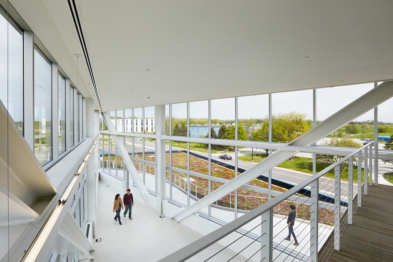 The new Office Technical and Education Building (OTE) is the central facility in the new Illinois Accelerator Research Center (IARC) at the Fermi National Accelerator Laboratory. IARC’s purpose is to bring together private industry with Fermilab’s world leaders in accelerator science and technology to promote new growth in the industrialization of accelerator use.
