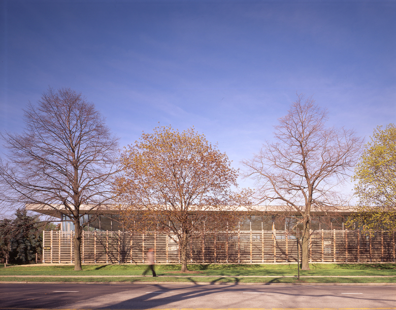 The new senior and community center for a mature Chicago suburb, is located on a reclaimed recycling site in a 27 acre park. The design approach seeks to visually and spiritually minimize the loss of the City’s finite green space, by creating a see through, pavilion-like building using materials that recall historical park structures.