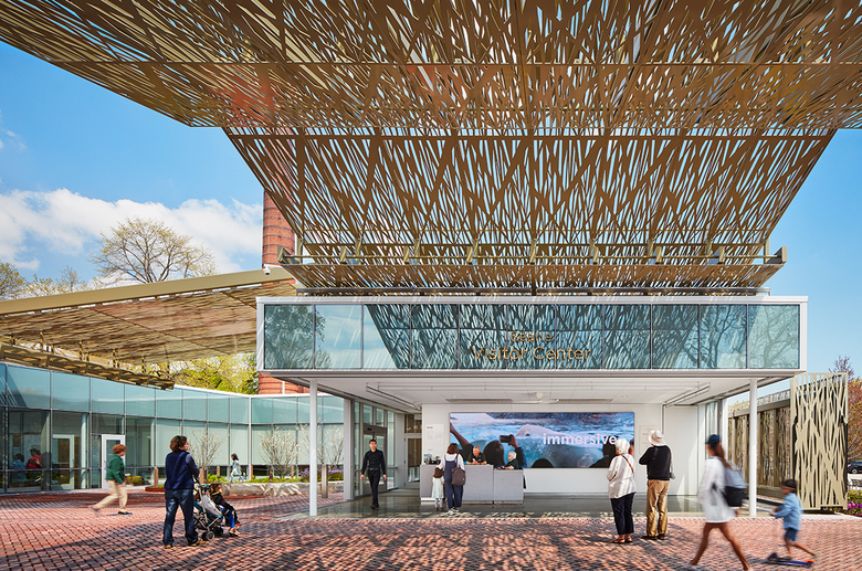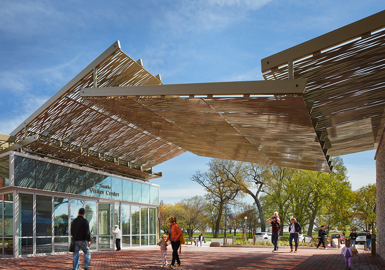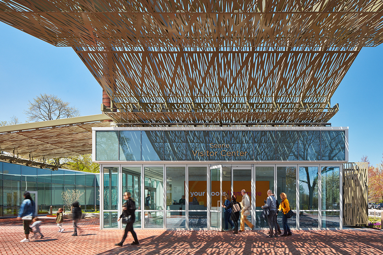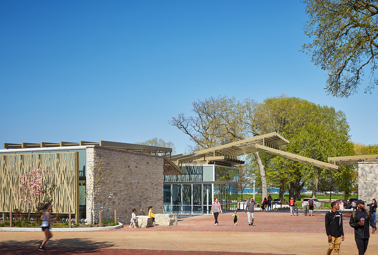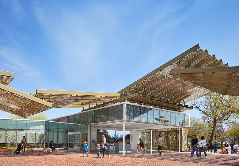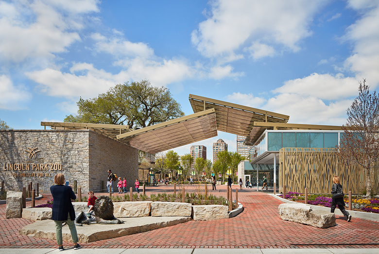 The Lincoln Park Zoo, one of North America’s oldest, has evolved since its 1868 founding into an institution that connects people with nature in the urban heart of Chicago. Through its focus on quality and conservation, the Zoo embarked on a capital campaign to re-work its visitor experience including a dynamic east gate pavilion as the new Searle Visitor Center.