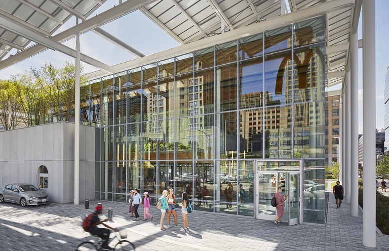 The site is a full city block, just steps off Michigan Avenue, occupied since 1983 by the iconic “Rock ‘n Roll” McDonald’s that emphasized drive through services. The new design re-balances car-pedestrian traffic creating a city oasis where people can eat, drink and meet. Landscape area increase 72% with 43% of the site being open and pedestrian focused, producing a new park-like amenity for a dense area of the city.