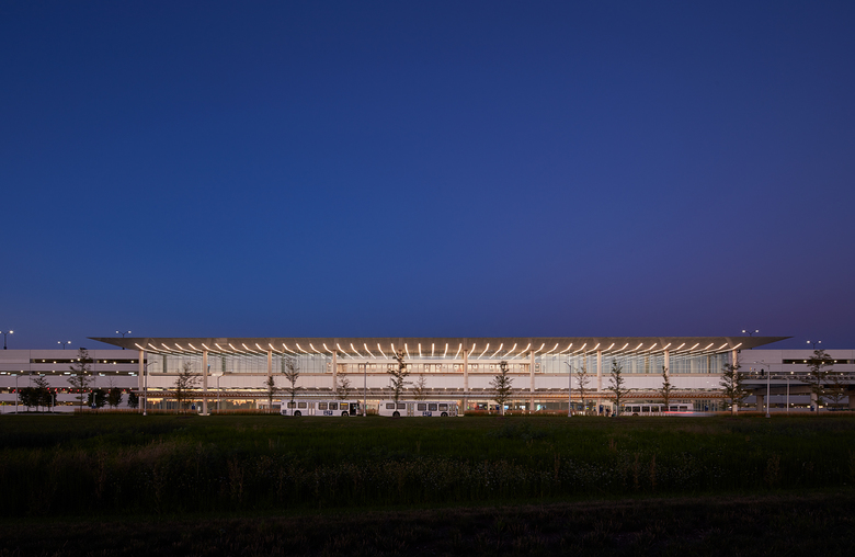 The new Multi-Modal Terminal removes approximately 1.3 vehicles each year from the central terminal roadways, reducing traffic and carbon dioxide emissions in the airport core. The completed project is expected to receive Silver Certification in the US Buildings Council Leadership in Environmental and Energy Design (LEED) program recognizing sustainable design.