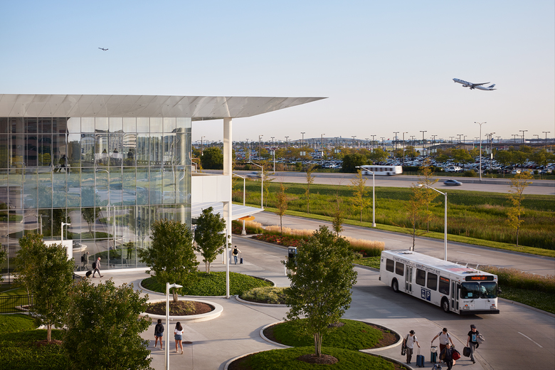 The new Multi-Modal Terminal at O’Hare International Airport connects the airport’s ground transportation options in one spot. Connected to the airline terminals by a 1-1/2 mile extension of the Airport Transit System (ATS), or people mover, it is a welcoming and convenient gateway to Chicago for arriving visitors.