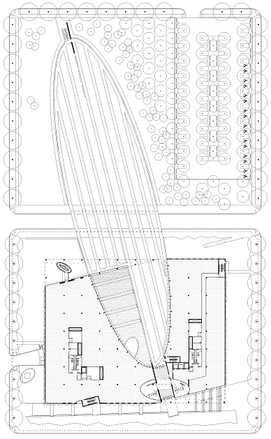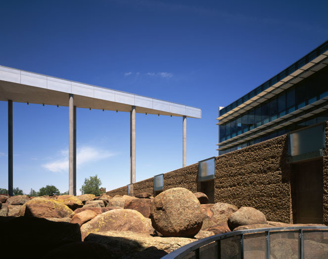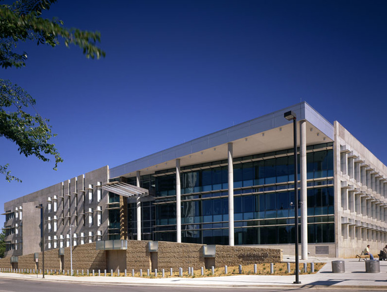The 185,000 square foot building is constructed on a 2 city block site, one block north and west of the former Murrah Federal Building. This long neglected part of the city is plagued by surface parking lots and rare green space. To help the economic revitalization of the neighborhood, the historic city grid is maintained to encourage pedestrian and vehicular traffic creating active street life and a sense of community. This new facility is about the future, seeking to reunite the federal community and stand as a symbol of freedom.