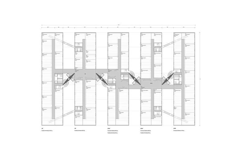 Grazie alla scelta volumetrica e tipologica il campus in ogni sua parte è in costante rapporto con lo spazio urbano e sociale: non crea una cittadella privata e autoreferenziale, ma espone con discrezione la vita del campus al pubblico e fa dialogare lo studio e il sapere con l’intera città.