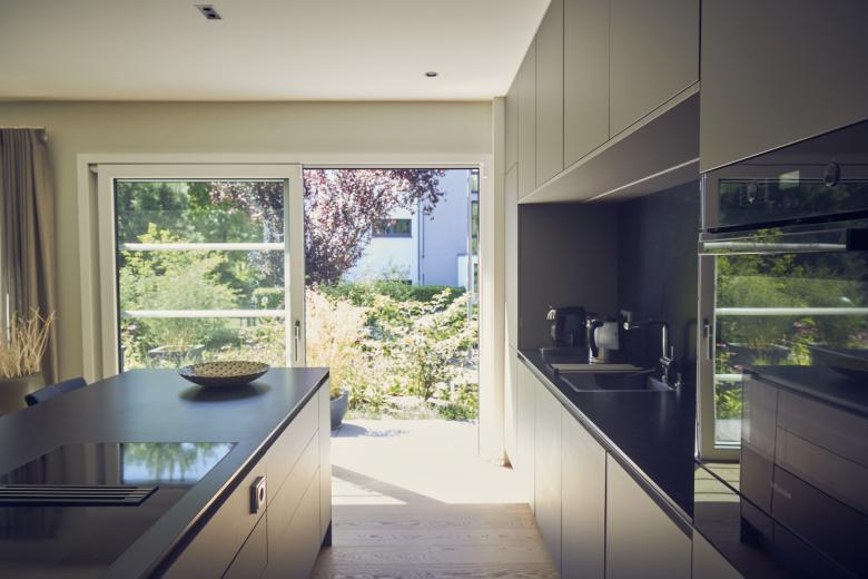 Das Haus fällt sofort ins Auge und ist Gesprächsthema in der Wohngegend: Die klare Form, die hochwertigen Materialien und die präzise Umsetzung in der Vorfertigung demonstrieren, wie Nachhaltigkeit, Technikinnovationen und anspruchsvolles Design harmonisch zusammenfinden.