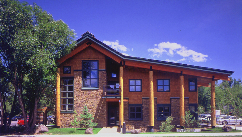 Constructed as one of the first planned-mixed use development in the town of Jackson, the Lyman building demonstrates Ward + Blake Architects’ commitment to cutting-edge design and innovation within the boundaries of sometimes stringent zoning  and budgetary considerations.  Designed on a development budget that required optimal return on investment, the Lyman building maximizes leasable floor-area-ratio with a daylight basement that is literally carved out of the site to create full-height windows in downstairs apartments.  Three commercial spaces work smartly together in the flexible two-story loft-like interior.  Residential and commercial uses combine comfortably, including a shared parking lot accessed by residents primarily at night and commercial customers by day.  Located at a downtown intersection, the Lyman building was designed to interface with two busy streets, using a barn like form to integrate with the Jackson Hole vernacular.