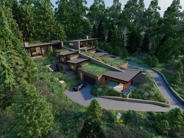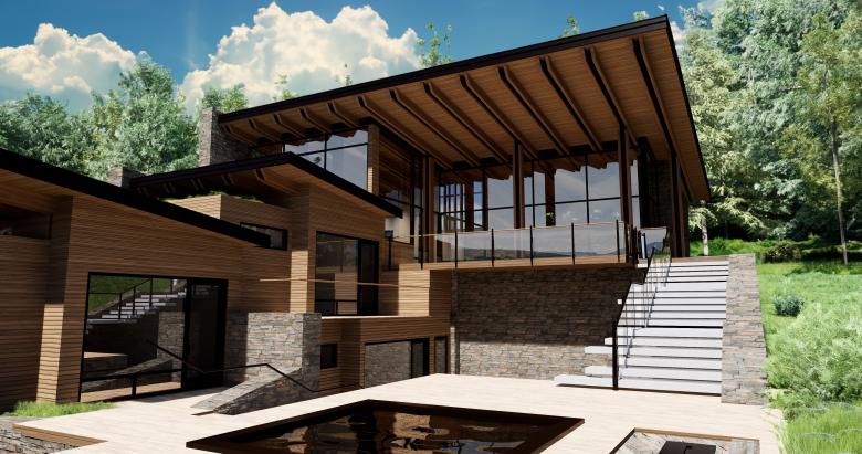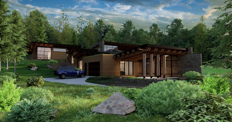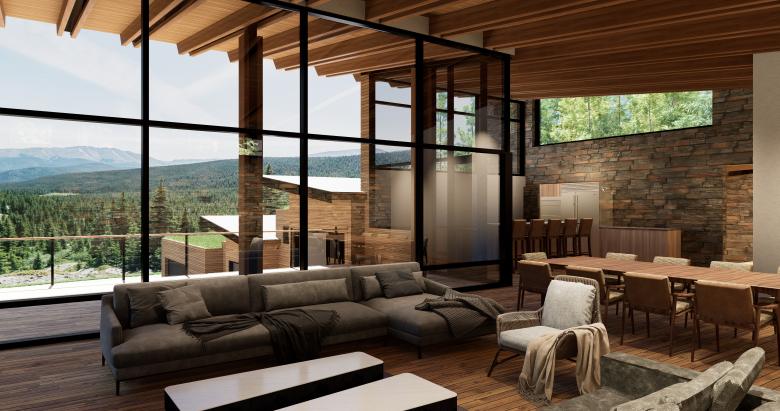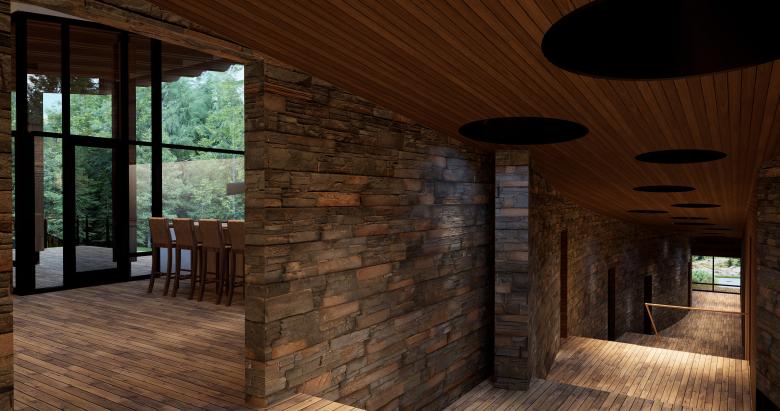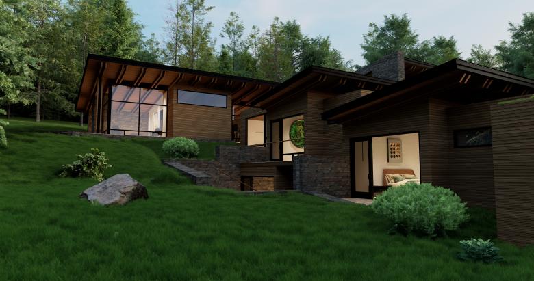 Altogether, these architectural strategies serve to decentralize the mass of the plan and create a foil to the over-scaled Lodge archetype typical of the area.
