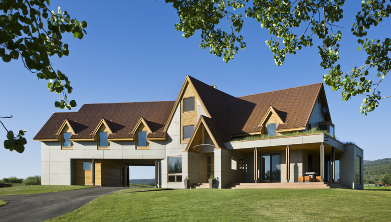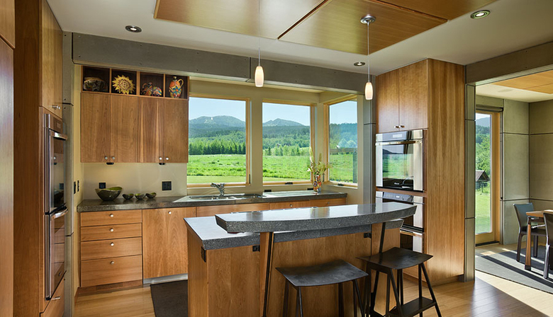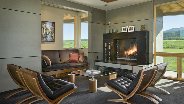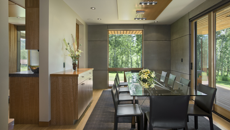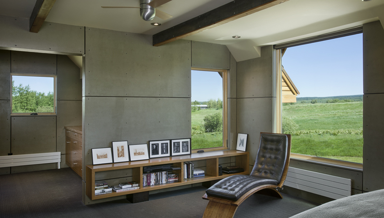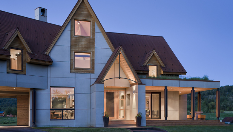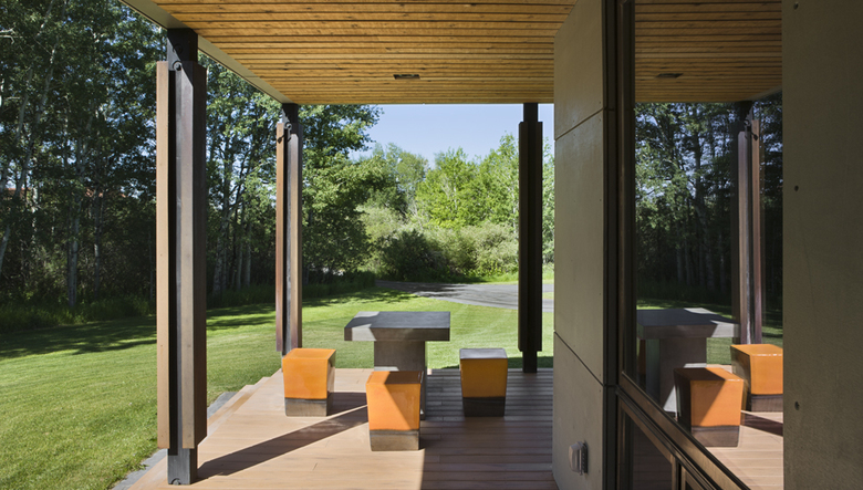 A low- maintenance material palette of Corten steel, Cem-Clad panels, steel, sod and cedar proceeding from exterior to interior spaces provides continuity. Enlarging existing and adding new window openings further opens the interior to its natural surroundings. Sod roofs added where possible also link outdoor environment with interior spaces while reducing temperature fluctuations for energy efficiency.