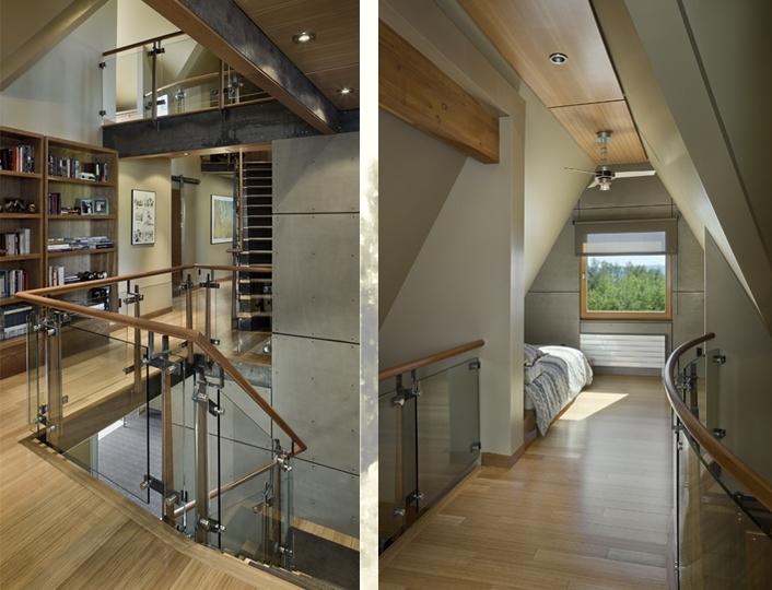 The interior’s most prominent element, a glass and steel staircase, winds through all three levels in an irregular zigzag configuration accentuated by its transparent quality. Douglas fir ceiling panels, bamboo floors, built-ins, architect-designed furniture and ponderosa pine-clad windows offer visual warmth and a sense of intimacy in priority interior spaces. Ultimately, the 85-percent renovation of the traditional original structure pairs architectural vision with the needs of a dynamic family for a uniquely modern reimagining of “home.”