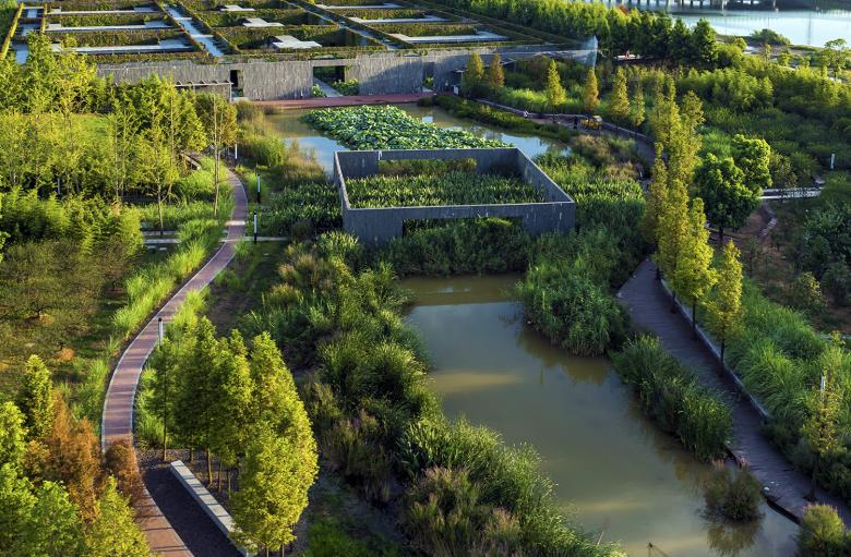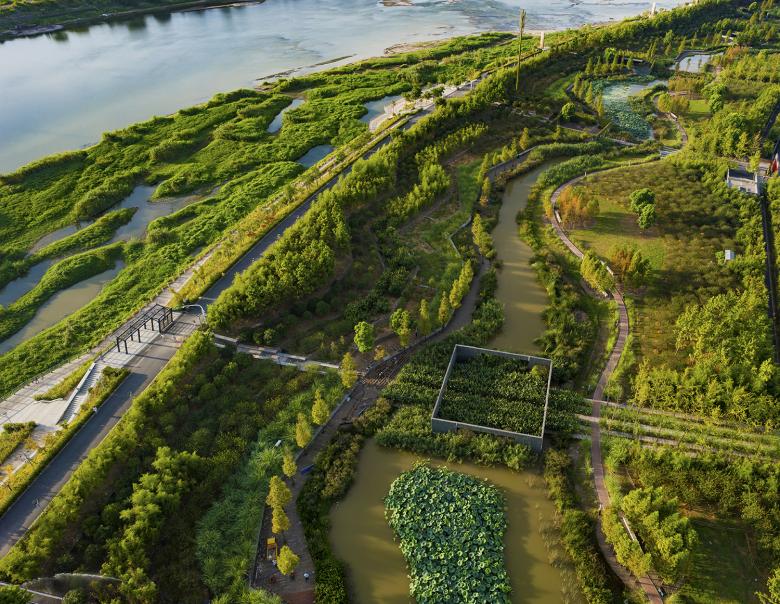 This project uses cut-and-fill strategy to create a constructed wetland that cleans eutrophic water and restores native habitats for biodiversity, adapts the hot and rainy subtropical monsoon climate for everyday outdoor use, and creates a matrix of explorative spaces inspired by the poetic and picturesque nature of traditional gardening and flower appreciation.