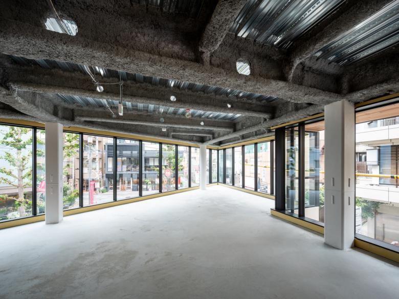 B1Fはスポーツジムや劇場スタジオなど1フロア1テナントで設定されている。1Fは当初、複数区画に分けることも、フロアを1テナントで占めることも設定されていたが、むしろ大きな区画の需要があることがわかり、1テナントで設定され、B1Fや2Fと内部階段でつなぐ事も可能とし、フレキシブルな賃貸スペースが提供されている。2Fは2区画に分割することが可能で、1Fから上がれるテラス状の共用通路が建物の奥に向かっており、建物のコーナーの交差点から各階に伸びる通路はさながら下北沢の細い通りが立体的に建物内に伸びているように計画されている。この通路の軒天井は温かみのある雰囲気を醸し出すために木材で仕上げた。