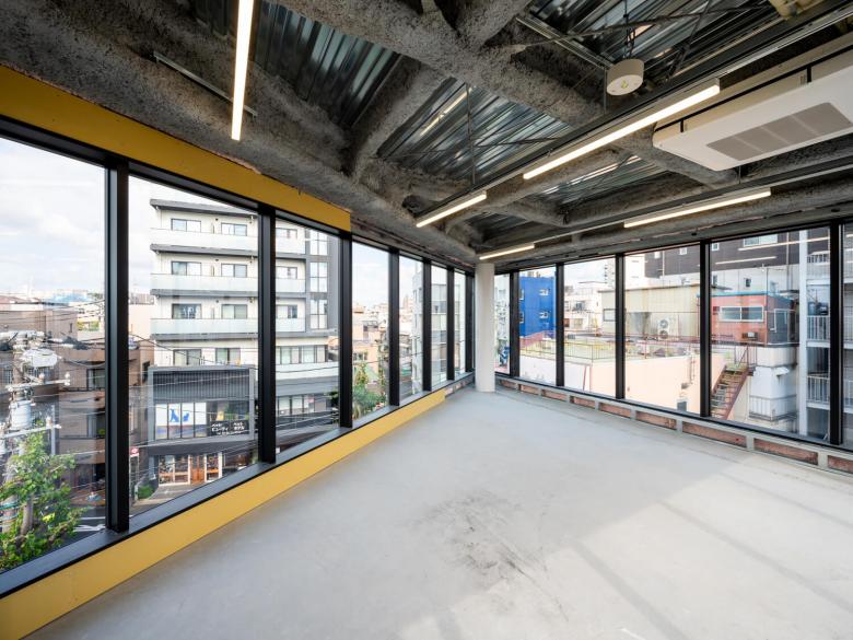 B1Fはスポーツジム、1Fと2Fは店舗で、3Fと4Fはオフィス用途に設定されているが、ヘアサロンやクリニック等に変更することもできる。