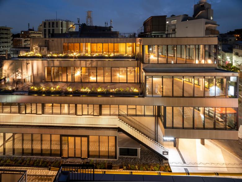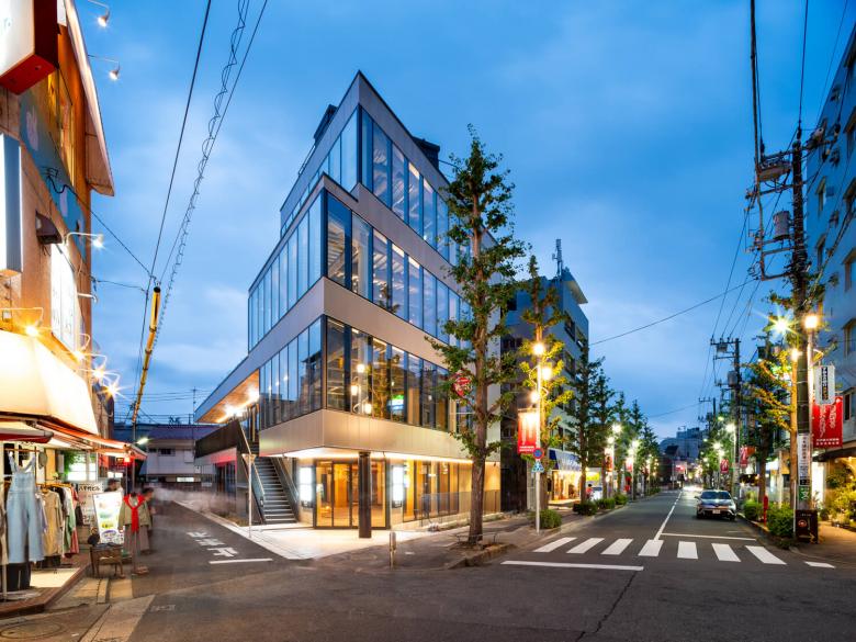 東京の下北沢の神岡寺川(現在の茶沢通り)とだいだらぼっち川の合流点近くの五叉路に位置する商業とオフィスの複合ビル。「シモキタ」と呼ばれる下北沢は、ヴィンテージ衣料品店、セレクトブックストア、音楽ショップ、ライブハウス、小劇場で有名で、個性的なカフェやバーも多い。のんびりとしたボヘミアンな雰囲気は、第二次世界大戦中に爆撃を受けなかったため、そのままの形を保っている迷路のような細い通りに由来している。
