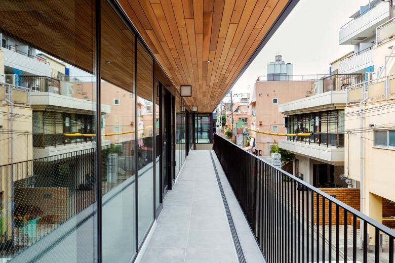 これらのテラスや通路は、細い通りによって作られている街中の小さな居場所をこの建物の中にも広げている。