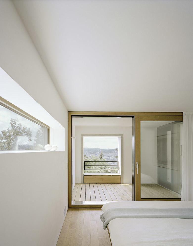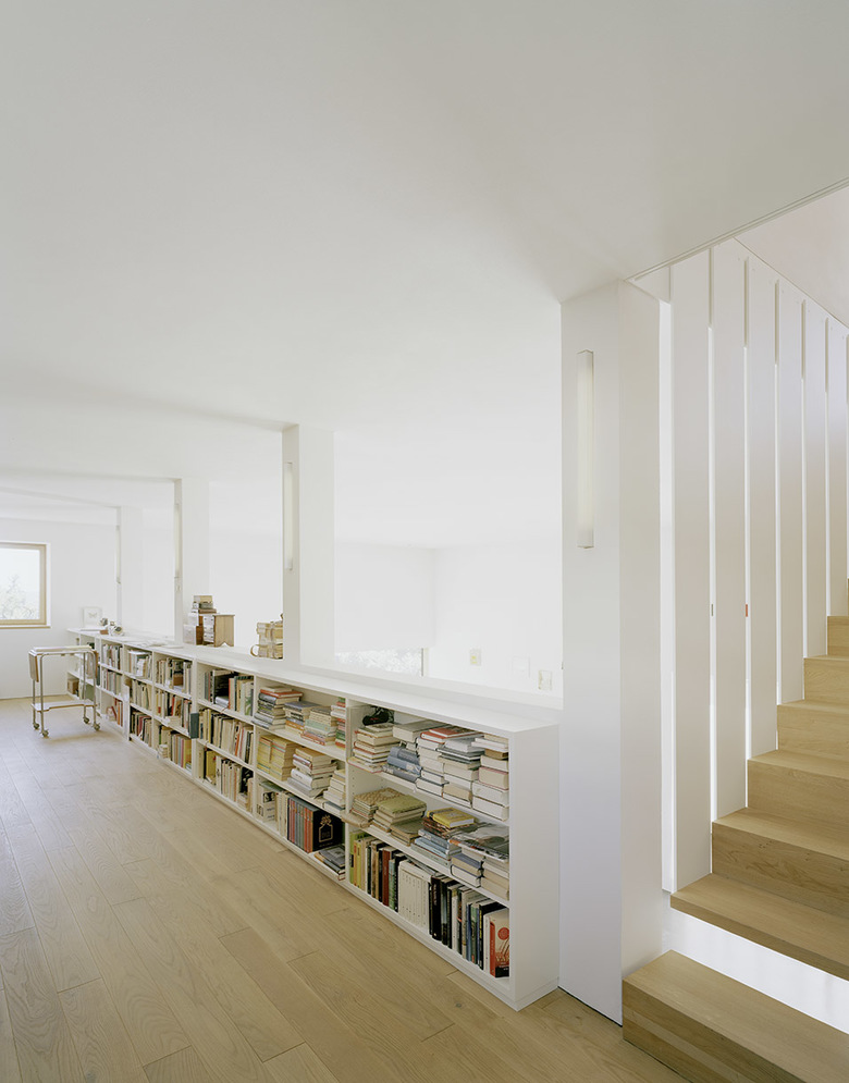 DIE SPRACHE DES MATERIALS – BLACK BOX_WHITE SPACE außen ruppig schwarz, innen weiß und glatt. Ein „Monolith der Ruhe“ inmitten baulicher Aufgeregtheit. Erst im Licht der Sonne gibt der ölhaltige Schiefer auf seiner anthrazit-schwarzen Fläche die Farben frei. „Was schwarz nicht gut ist, kann auch durch die Farbe nicht gut sein“ Anton Stankowski