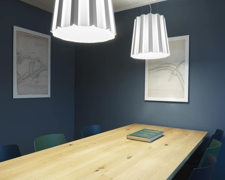 Sitzungszimmer in Juniper Ash Blau mit grosszügigem Besprechungstisch