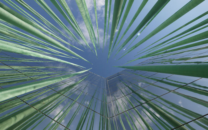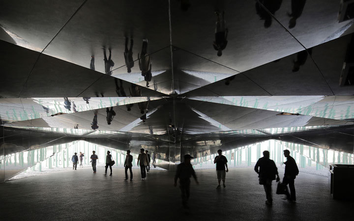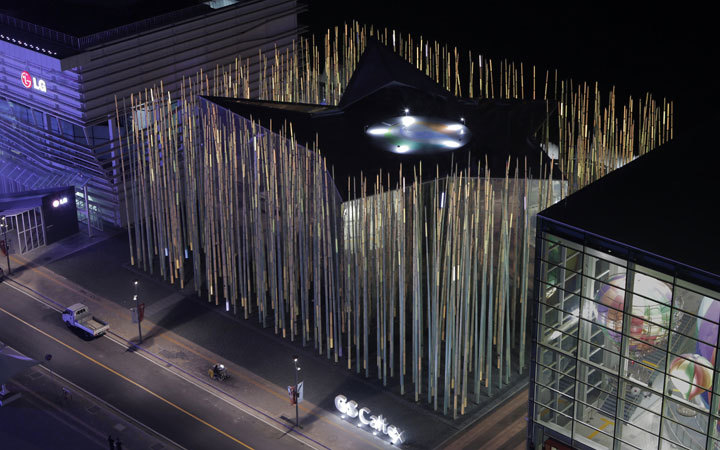 Sinnbild der Energie: Auf der Expo Korea verdeutlicht der Firmenpavillon GS Caltex Aufgaben und Visionen des koreanischen Ölkonzerns. Die Pavillonarchitektur präsentiert sich als ein dynamisches Ensemble, das auf den ersten Blick an ein überdimensionales Reisfeld erinnert. 18 Meter hohe, so genannte Blades wiegen sich wie Grashalme im Wind; teils sind sie interaktiv und leuchten bei Berührung auf. In der Mitte dieses Energiefeldes liegt ein sternförmiger, verspiegelter Pavillonbau, der sich optisch komplett zurück nimmt. Über angehobene Ecken des Sterns erhält der Besucher Zugang zum ebenfalls verspiegelten Eingangsbereich im Erdgeschoss. Im Obergeschoss befindet sich das Zentrum des Pavillons: ein sieben Meter hoher Rundraum mit Panoramaprojektion. Poetische Bilder in reduzierter schwarz-weiß Ästhetik vermitteln die Verantwortungsbereitschaft des Unternehmens hinsichtlich nachhaltiger Energiekonzepte.