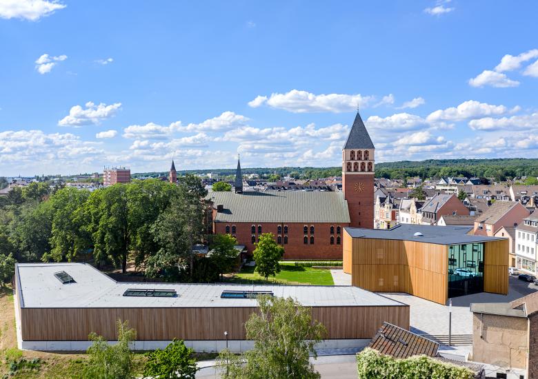 Das Pfarrzentrum der katholischen St. Hippolytus-Gemeinde in Troisdorf ist Teil eines dreigliedrigen Ensembles: Zwei Neubauten – ein Kindergarten und das Pfarrzentrum – sowie eine bestehende Kirche dienen als urbaner Treffpunkt, als Ort für die Gemeinschaft.