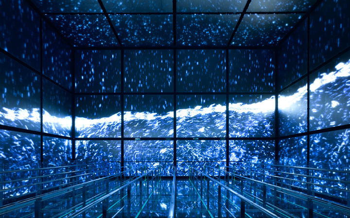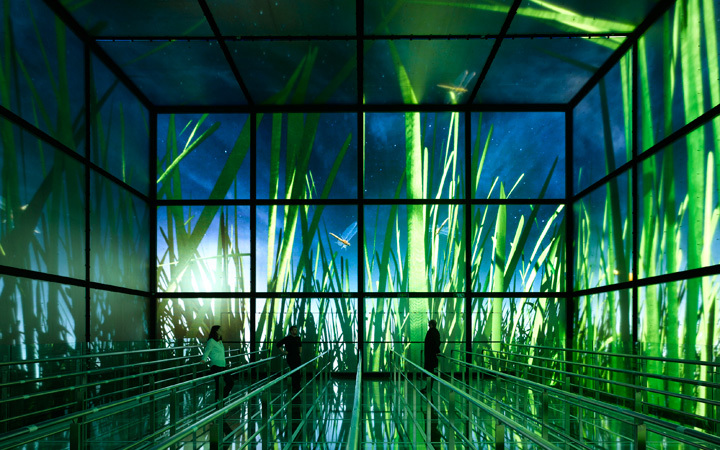 Die Besucher der Magic Box tauchen in imaginäre Raumlandschaften ein. Ein enges LED-Raster auf den sechs Innenseiten des 15 Meter hohen Würfels ermöglicht die Raum-generierende Bespielung. In überraschenden Bildern werden Aufgaben und Visionen des Unternehmens State Grid vor Augen geführt, nämlich die verantwortungsvolle Bereitstellung eines zuverlässigen Stromnetzes, das zur Verbesserung städtischer Lebensbedingungen beiträgt.