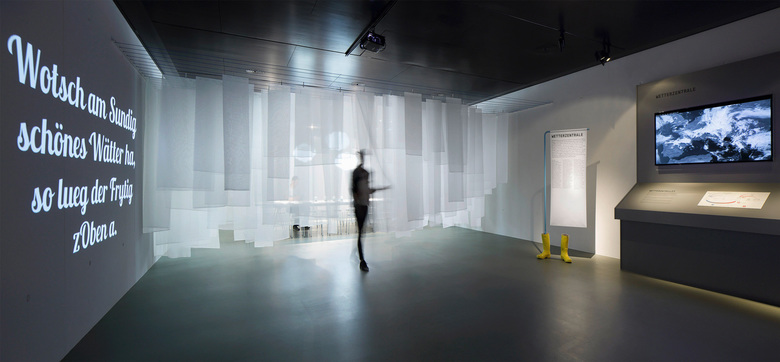 Mit starken visuellen Elementen gelingt es Bureau Hindermann, die komplexen Sachverhalte des Wetters so zu vermitteln, dass die Ausstellung meteorologische Fachleute ebenso begeistert wie die breite Bevölkerung.