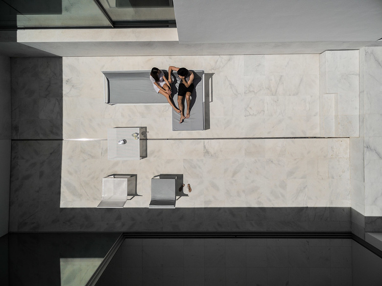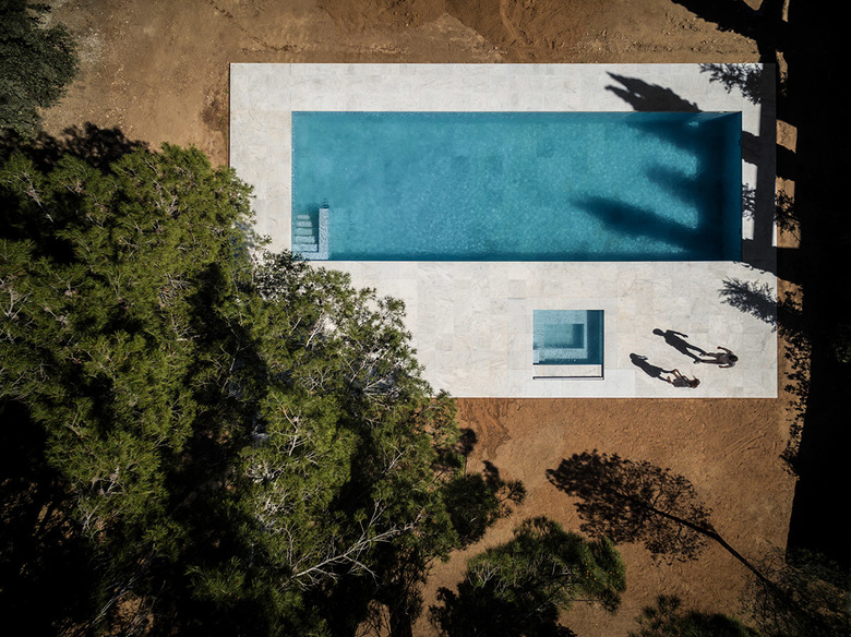 El nuevo estrato construido en la historia de este lugar emplea nuevos volúmenes para las nuevas partes del programa. Se proyecta así un espacio que alberga las zonas de ocio, conteniendo siempre la escala de la edificación que se presenta como una suerte de agregación de pequeñas piezas, que dibuja patios y acota las zonas, como lo hace la arquitectura tradicional mediterránea.