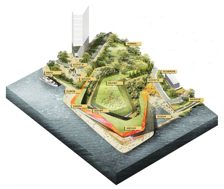 Dali Town Haibei area is located in the east of Nanhai District of Foshan City, next to the Jinsha Island of Guangzhou. It is another important waterfront node of the Pearl River Channel extending westward. Driven by the Guangfo co-city effect, the Dali Haibei area, located at the core of the same city, will serve as a new landmark and a city card for the eastern part of the South China Sea.