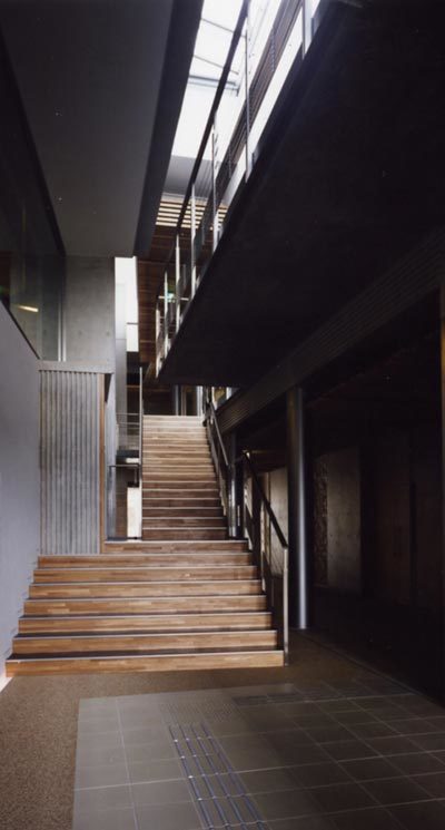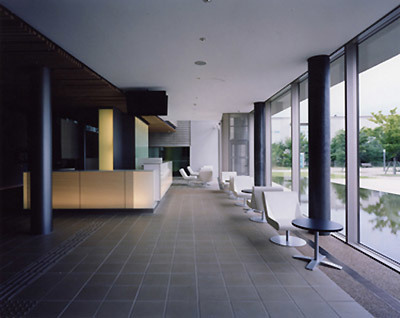 However, open space is created between the corridor and the wall by separating foundations. This alley like space insulates sound and conditions lights and air. By this complete sound insulation, passers-by can look into the hall as if it is a courtyard. It even allows families with small children to enjoy the event, which encourage more cultural activities. Furthermore, the area outside of the hall is designed to be one with area in front of buildings and the tree-lined main street. Joyous atmosphere of the hall can be shared by more people as the hall is visible from the surrounding area.