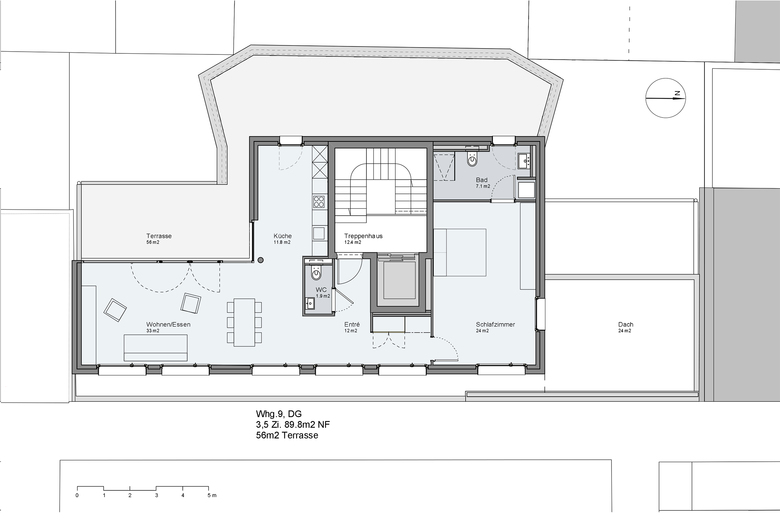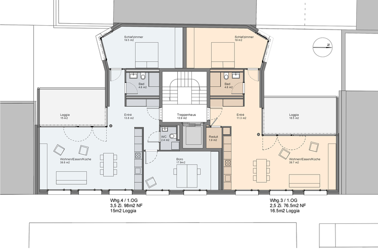 Tageslicht und privater Aussenbereich waren unsere Leitgedanken bei der Erarbeitung des Projekts. Es galt, das Tageslicht durch sinnvolle Abwicklung und Anordnung der Wohnräume, optimal zu nutzen. Zudem Verfügen alle Wohnungen über einen privaten Aussenbereich in Form einer Loggia. Die Loggien bieten einen zusätzlichen Wohnraum während den warmen Jahreszeiten. Die Lage im Kleinbasler Matthäusquartier erforderte einen einfachen Ausbaustandart und einen ökonomischen Umgang mit den Mitteln.