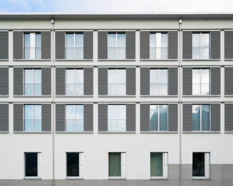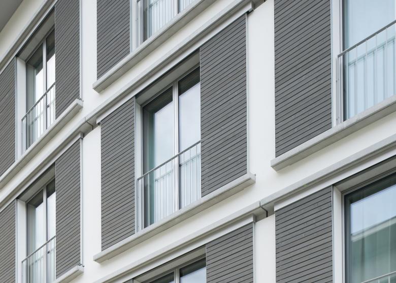 Auch in der Fassadengestaltung wurden mittels den traditionellen Fensterläden, der repetitiven Fensteranordnung sowie der klaren Häuserstruktur vertraute Elemente eingebaut. Trotzdem behält der Komplex seinen eigenen Charakter