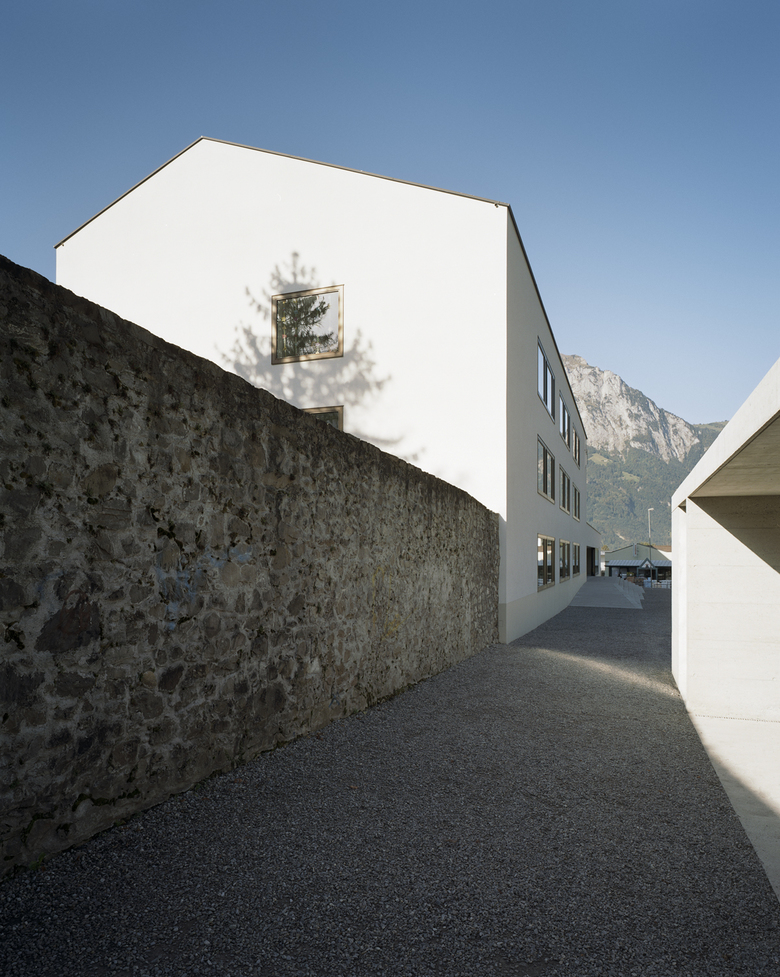 Das Primarschulhaus ist Teil des Klosterbezirks des Frauenklosters St. Karl Altdorf. Neu- und Altbauteile ergänzen sich zu einer Einheit. Der Bezug zur Klosteranlage bleibt immer spürbar. Die Merkmale des Ortes und des alten Schulhauses werden mit der Erweiterung bewahrt: Die Klassenzimmer orientieren sich zum introvertierten, ruhigen Klosterhof. Der Unterricht findet in einer konzentrierten Atmosphäre statt. Der Pausenplatz und die Pausenhalle sind zum Dorfzentrum orientiert und bieten einen offenen Raum im Schutze der Klostermauern. Nördliche Architektur verbindet sich mit südlichem Charme.