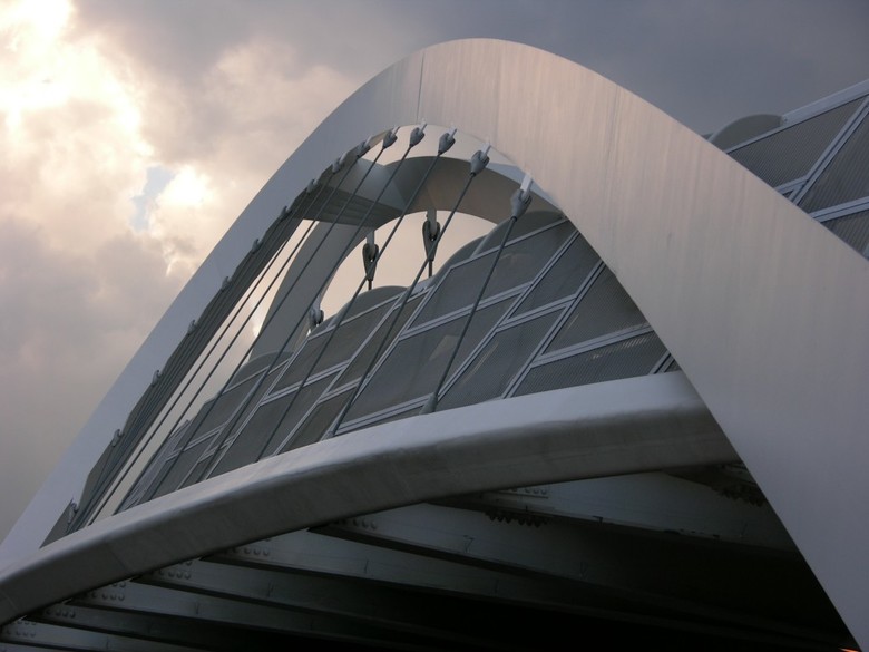 The White Horse Bridge structure consists of two tied twin arches which rise to a height of 11 m and span 30m. Steel cables attached to the arches support the composite steel and concrete deck. The arches divide the bridge into three areas, the area at the west designated part of the “paid area” of the future station, the central area forming the main pedestrian thoroughfare and the east area allowing event day visitors to access the platforms of Wembley Stadium station via composite steel/ concrete staircases. Full height stainless steel mesh cladding is provided along the edges of the bridge to meet stringent Network Rail requirements.
