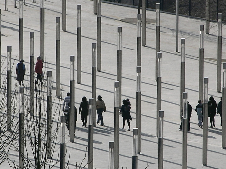 The square is located to the south of a major development by Quintain Developments and links seamlessly into their public realm masterplan. The space has been designed to accommodate huge crowds on event days, however it also works a focus of local and community activities on non-event days. The space is segregated into three zones. There is an optional queuing zone on the west side of the marshalling area, the central zone provides direct access across the bridge to Wembley High Road, and the final zone provides a queuing area for train station platforms. The zones are separated by using linear highlights in the hard landscape to define and modulate the space; with lighting, seating and rest areas integrated into curved areas between the movement zones.